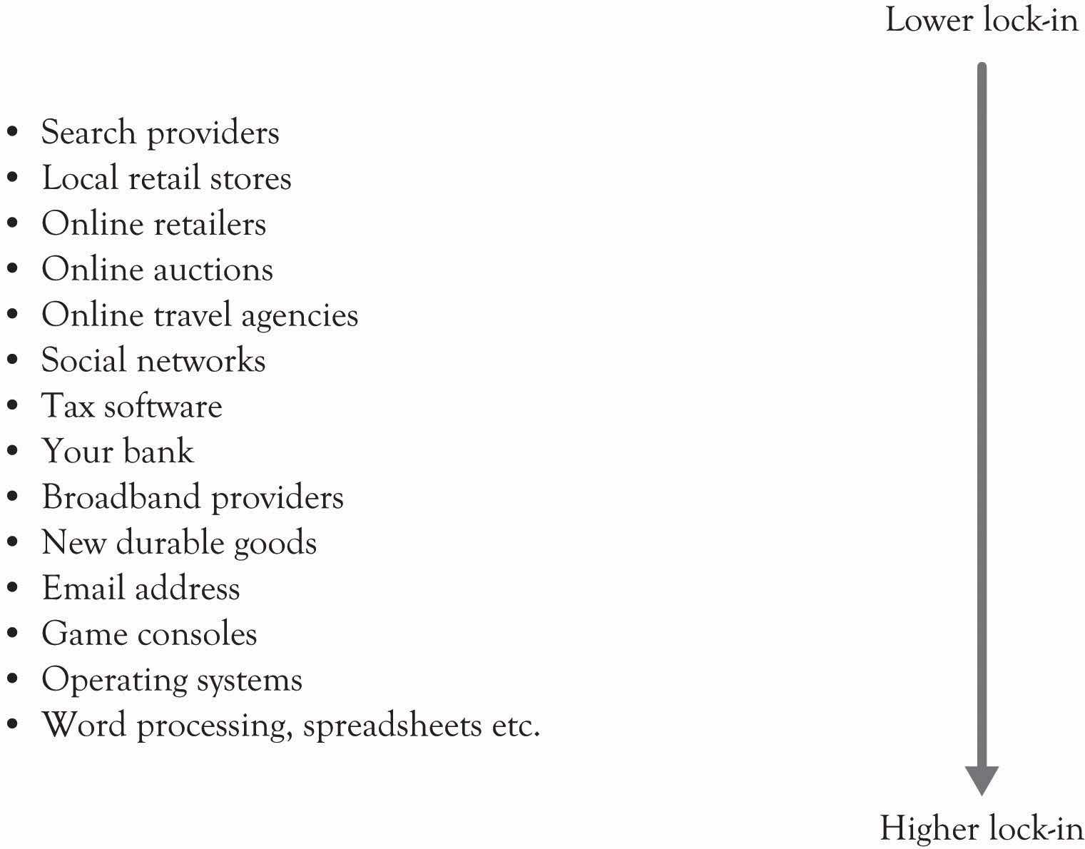 Figure 10.2 Levels of Lock-In for Several Businesses