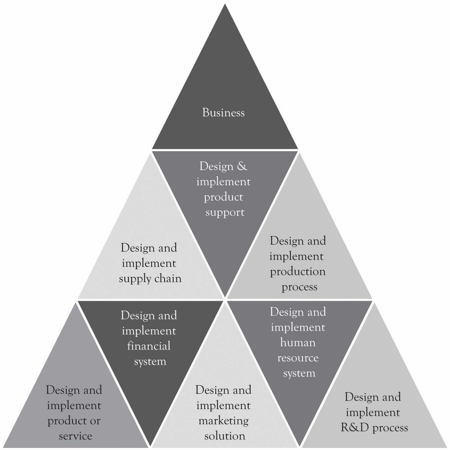 Project managementThe tool for executing the plan and installing the business processes. is the tool for executing the plan and installing the business processes. It helps to detail what tasks will be accomplished, who will be involved in completing the tasks, and when tasks should start and finish. The minimal tasks that need to be accomplished for a business to start or launch include marketing and sales, production and operations, staffing, and accounting. In addition, some sort of research and development (R&D) process needs to be initiated soon after launch in order to re-prime the pump. These are the first steps in designing organizations for the long term.