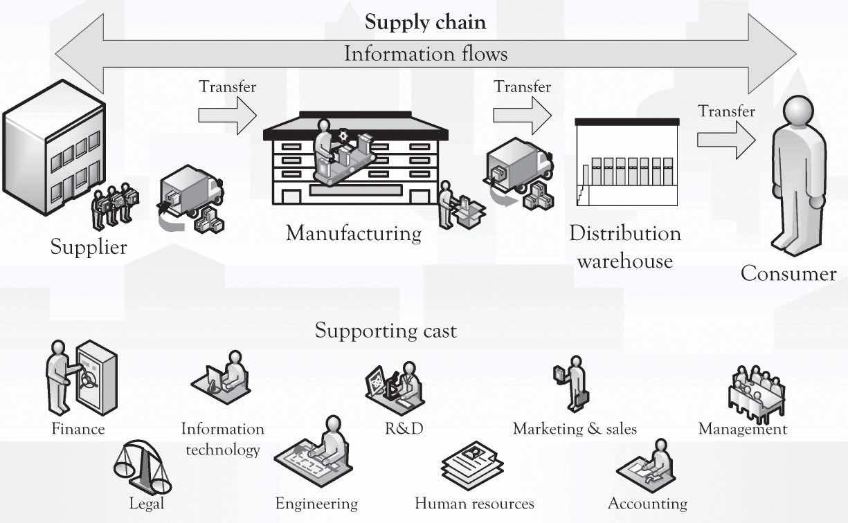 Even the simplest start-up company has to accomplish the functions described above in some capacity. These systems may be in the mind of the entrepreneur and also executed by the entrepreneur, but they are still necessary for survival. There are other system processes that need to be in place as illustrated in Figure 13.2 "Systems Emerging Over Time". These systems or functions typically emerge and evolve as the business grows and prospers. A good way to consider the complexity of a large business is to think about the components of the supply chain. This is again illustrated in Figure 13.3 "Large Organizations Need Many Systems and Structures" where a number of critical processes need to be in place for a large and growing supply chain. In larger organizations, these activities are part of a more formal approach. The formal approach is project management. If a business only has one employee, the entrepreneur, then all the systems will be conceptualized and executed by the entrepreneur. However, even in a small, one-person operation, understanding and implementing some type of project management is necessary in order to deal with the complexity of the start-up process. Just having a checklist of things to do and things that have been accomplished will help in dealing with the overwhelming complexity of launching a start-up.