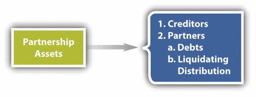 If the firm is to be terminated, it is wound up. The assets of the partnership include all required contributions of partners, and from the assets liabilities are paid off (1) to creditors and (2) to partners on their accounts. Under RUPA, nonpartnership creditors share equally with unsatisfied partnership creditors in the personal assets of their debtor-partners.